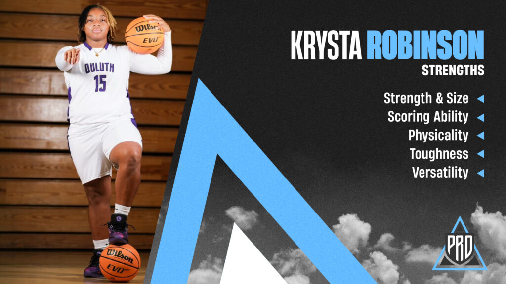 🗣️’25 @RobinsonMKrysta (Duluth HS) is a tough, strong power forward that is physically imposing in the paint.